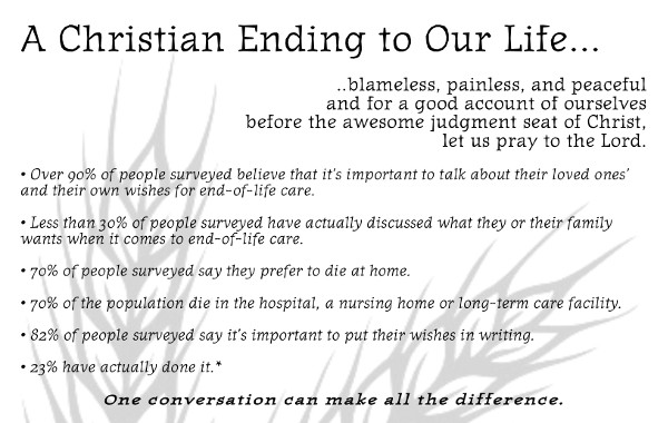 St. Nicholas Orthodox Church invites you to a presentation & workshop on how you might start a conversation to make your wishes for end-of-life care known to family & loved ones, or how to help someone else start a conversation.